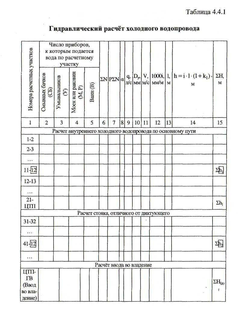 Цель гидравлического расчета внутреннего холодного водопровода заключается в определении расчетных расходов, диаметров труб и потерь давления на расчетных участках и во всей системе таким образом, чтобы обеспечить бесперебойное водоснабжение всех потребителей в здании с необходимым давлением.