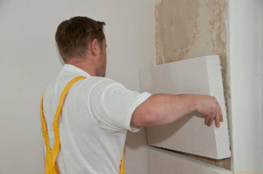 Плиты утеплителя приклеивают к внутренней поверхности утепляемой стены. В продаже имеются специальные клеи для приклеивания плит пенополистирола к стенам. А можно использовать клей для керамической плитки.