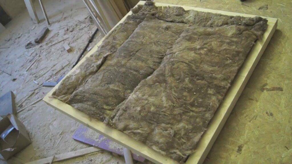 Крышка также собирается из бруса и обшивается с обеих сторон листами фанеры или ОСП, а для утепления внутрь закладывается минеральная вата или пенопласт соответствующе толщины.
