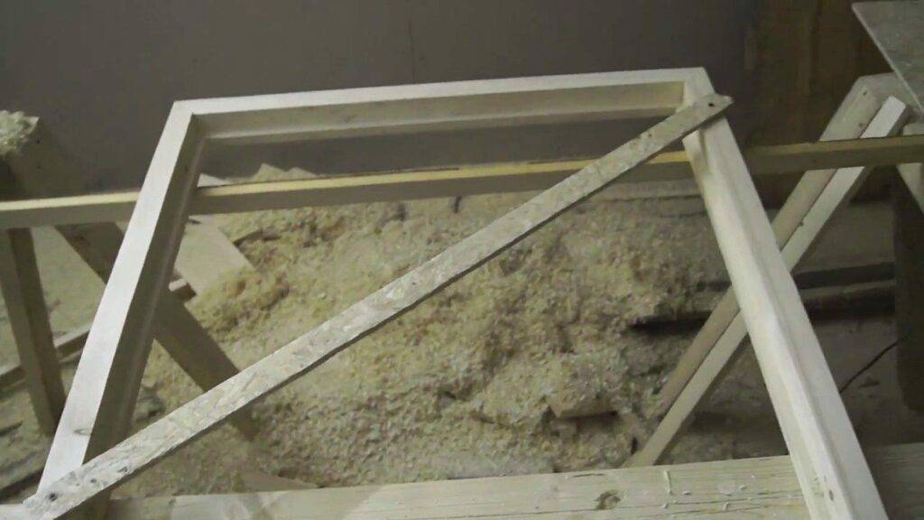 - На первом этапе монтируется каркас, для изготовления которого необходимо набить деревянные бруски по периметру предполагаемого проема.