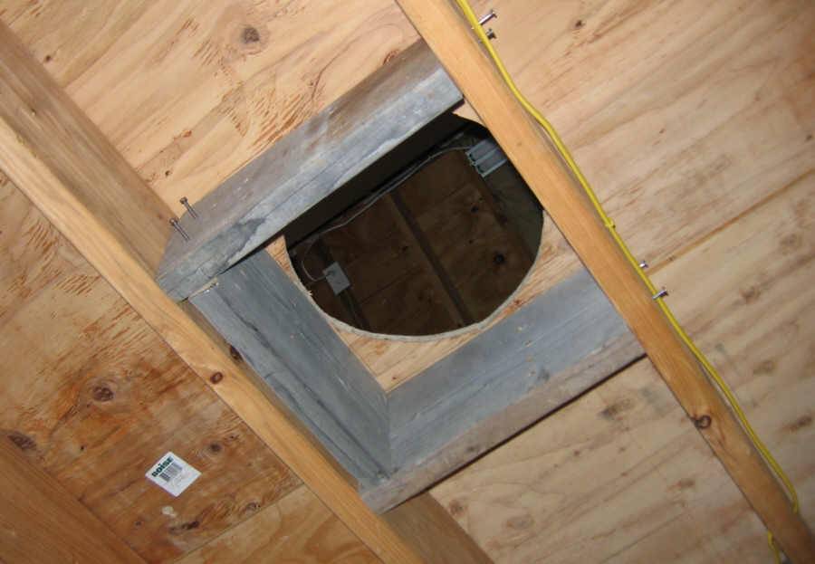 Если в перекрытии есть легко возгораемые материалы, утеплитель или деревянные детали, то необходимо их убрать, чтобы они не соприкасались с проходным стаканом.