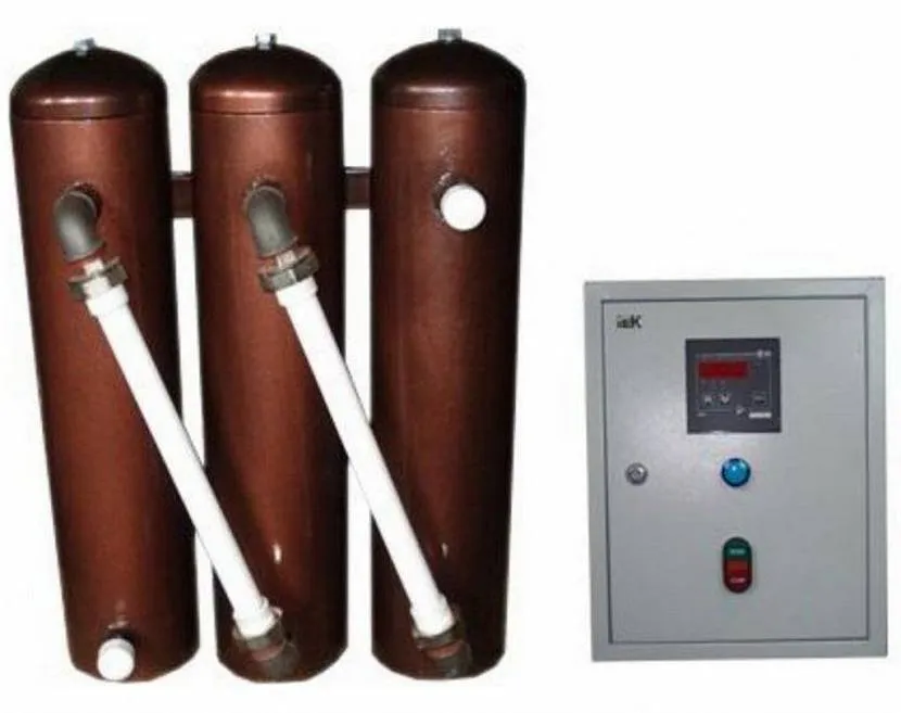 Электродные котлы нагревают воду за счет ионов, образовавшихся в воде в результате подачи на электроды переменного тока.