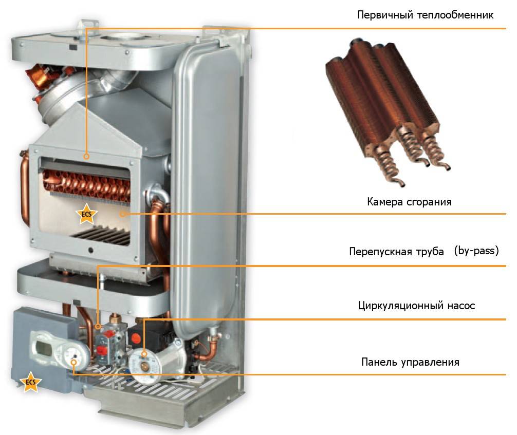 Модель EcoTec Plus обладает особой структурой, благодаря которой газ расходуется на 30% меньше.