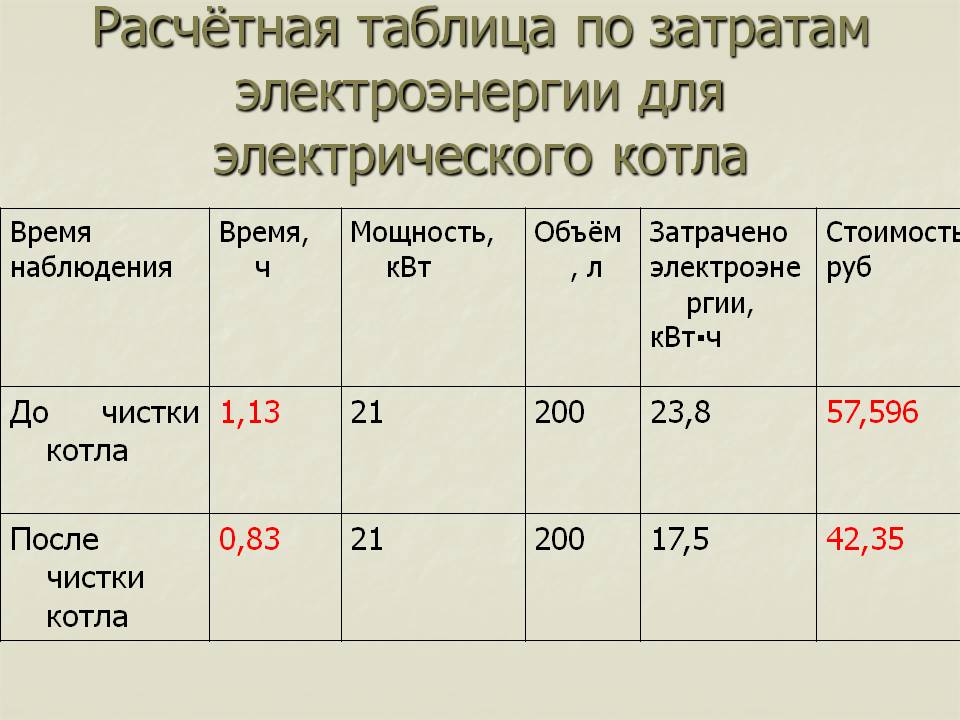 Данные в таблице рассчитаны и представлены, не отталкиваясь от поддержания конкретной температуры в помещении, и с оговоркой, что выбрано оптимальное по мощности оборудование. Это позволяет сравнить примерный порядок чисел при использовании электрического котла отопления для частного дома.