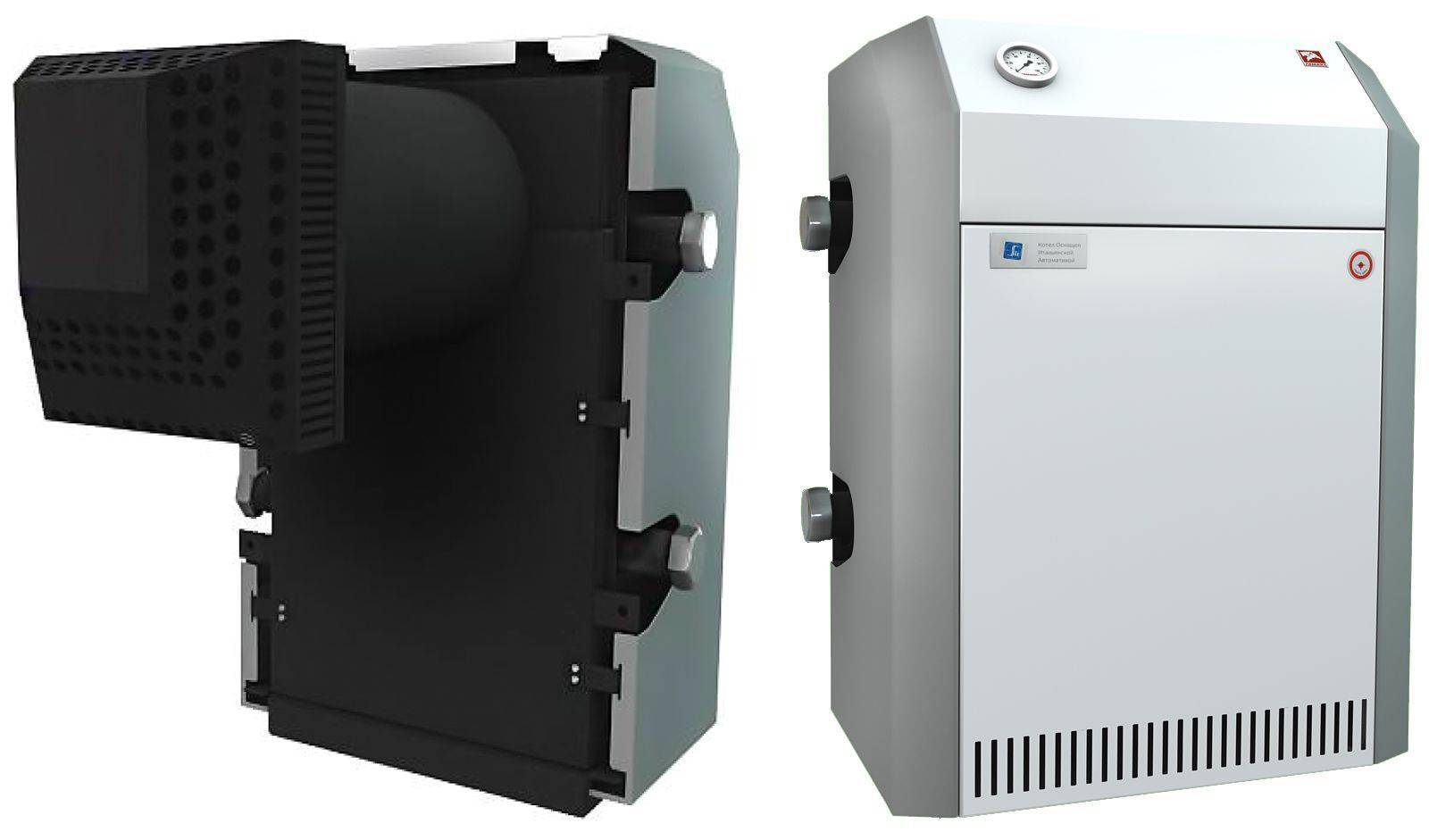 - Все варианты котлов газового типа являются компактными, так как все составляющие элементы котла собранные в одном корпусе.