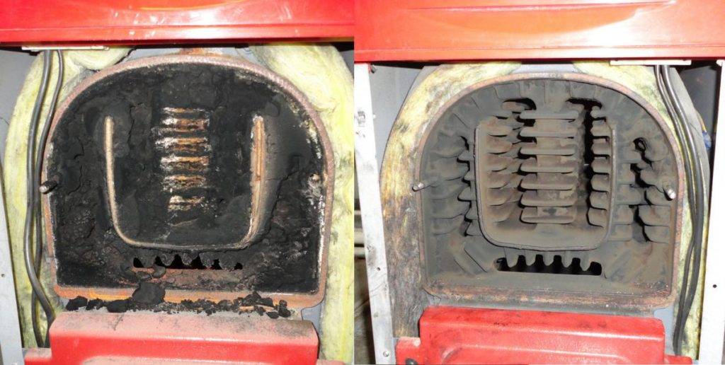 Неравномерный нагрев теплообменника вызывает быстрое срабатывание датчика перегрева. Чаще всего загрязнение оребрения копотью развивается совместно с засорением дымохода.