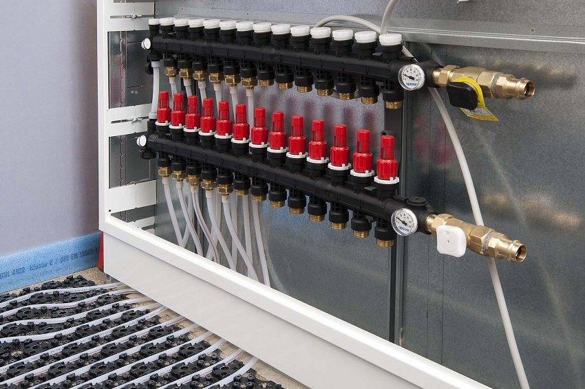 Коллекторный шкаф с подключенной системой теплого пола