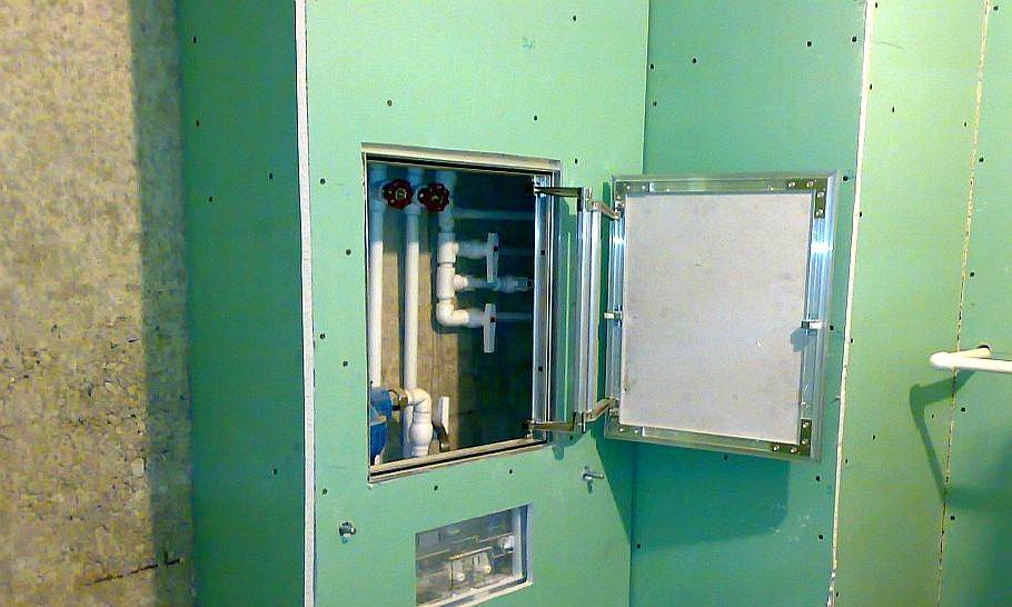 Другой важный момент – каркас обшивки, прикрывающий стояк, должен предоставлять возможность без особого труда добираться до стыков канализационных и водопроводных труб. Также надо позаботиться, чтобы ревизионные лючки для водяных счетчиков и вентили выполняли свое предназначение, и всегда можно было бы поменять те же счетчики, если такая нужда возникнет.