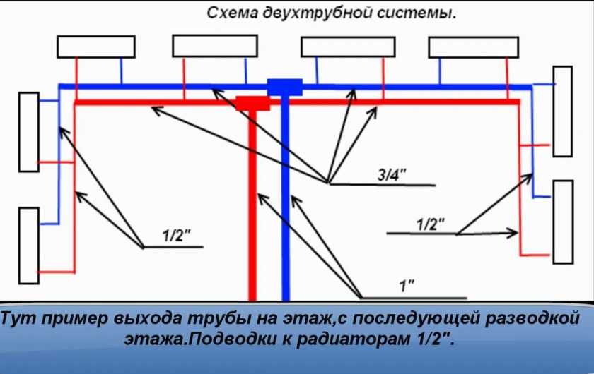 Достоинства двухтрубной системы – быстрый прогрев всех радиаторов, достаточно равномерный прогрев комнат, экономия на количестве радиаторов, возможность регулировки каждого отдельного радиатора. Труб нужно больше, но их стоимость невелика.
