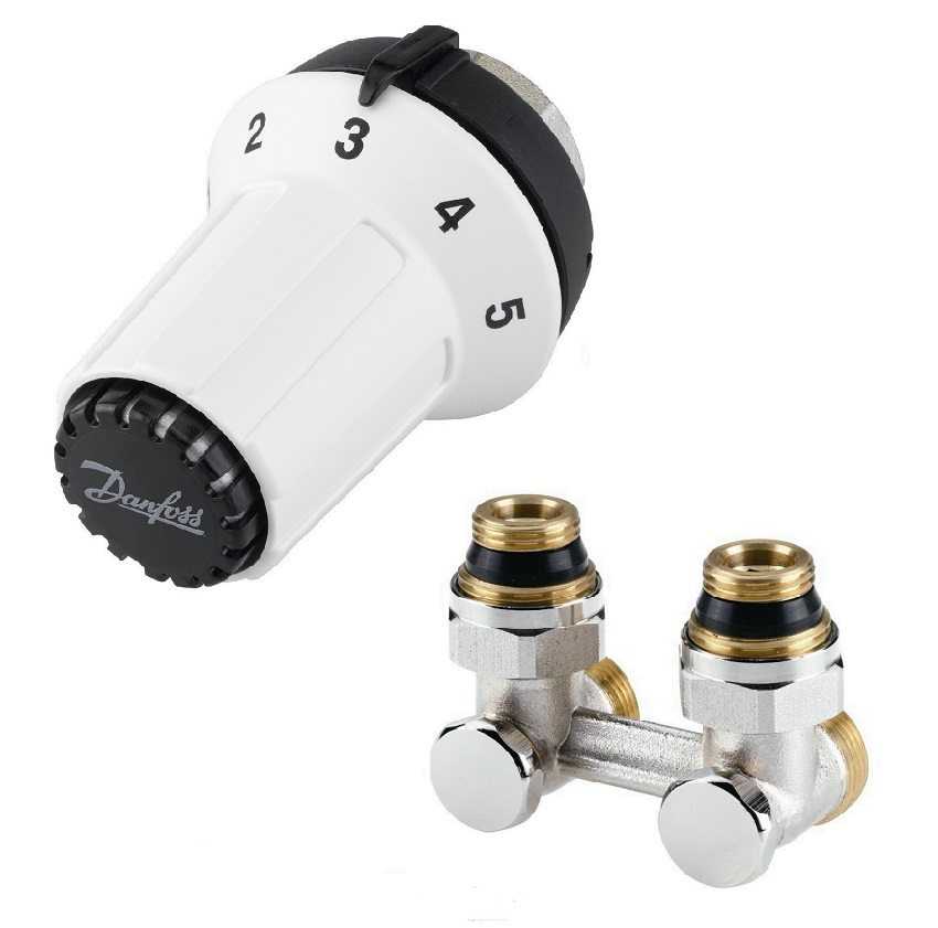 Комплектующие к биметаллическим радиаторам — терморегулятор и переходники.