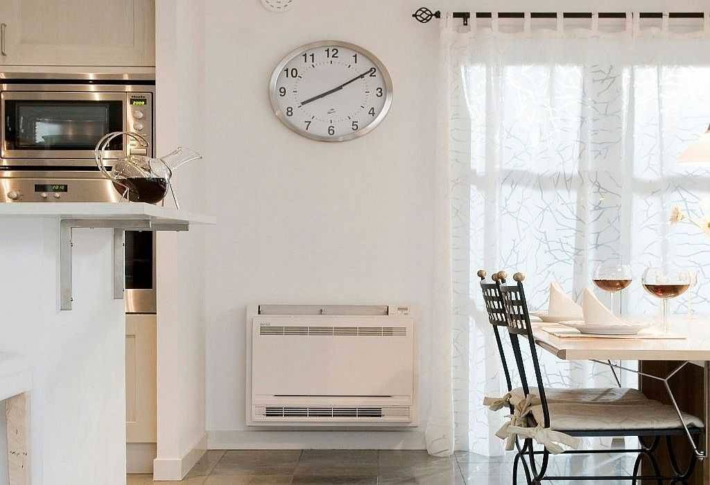 Такой метод отопления, по скорости набора необходимой температуры в комнате, обходит электрические прототипы, а тем более радиаторы водяной системы отопления. Такая особенность связана с большим показателем теплоотдачи от камеры сгорания. Самые распространённые варианты использования конвектора: