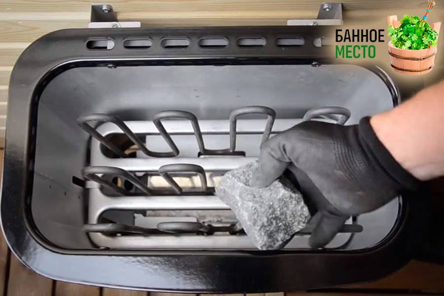 Самое главное различие наполнения такой печи заключается в размере фракции. Нужно взять относительно маленькие в размерах камни — около 4-7 см по большой стороне. Их нужно разместить так, чтобы между элементами оставалось маленькое пространство, и небольшой зазор между ними и электронагревателями.