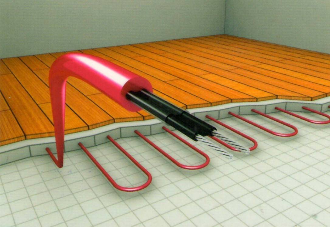 Такой вариант функционирует от нагревательного элемента – электрического провода (кабеля). Он укладывается в специально подготовленную стяжку.