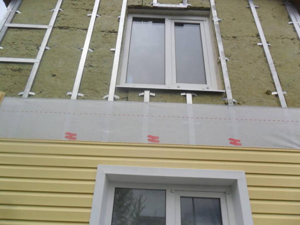 Поверх утеплителя крепится мембрана, защищающая слой от воды и ветра. После завершения процесса изоляции производится монтаж сайдинга.