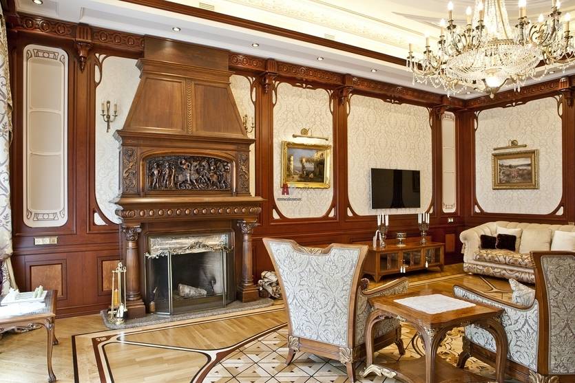 Шикарные камины в винтажном стиле и современные конструкции сделают интерьер более эксклюзивным и дорогим. Стильная мебель, антикварные предметы, нейтральные ткани для штор и мягкая текстура обивки добавляют элегантность и изысканность.