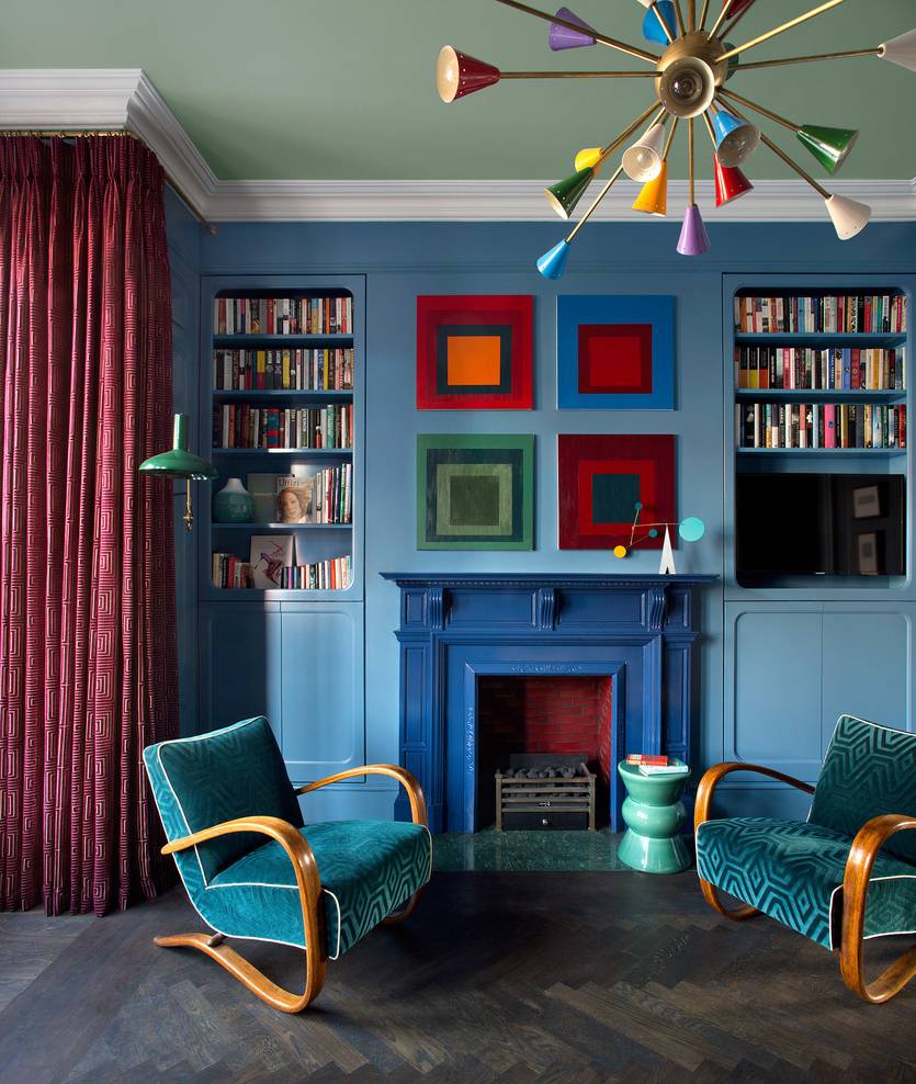 Яркие оттенки цвета привлекают детей и взрослых, а сочетание украшений и цветов придает комнате уютную домашнюю атмосферу. На фото лучшие идеи для дизайна интерьера в современном стиле с камином в гостиной.