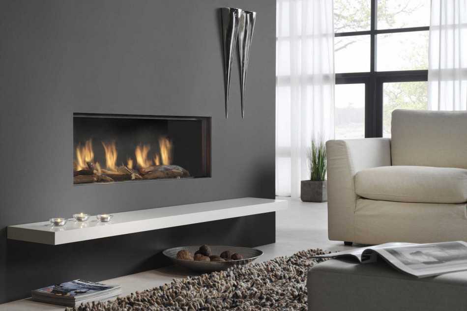 Газовые. Источником энергии является природный газ, а значит для его установки потребуется разрешение специальных служб. Кроме того, расположение такого очага сильно ограничено соответствующими коммуникациями.