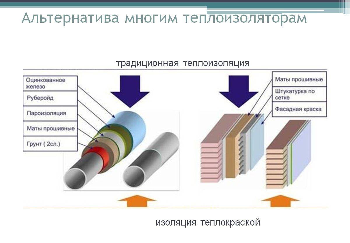 Эффект от использования теплокраски достигается за счет большой численности пустотелых микросфер – потери тепловой энергии сокращаются из-за обычной конвекции. Показатель теплоэффективности сверхтонкой теплоизоляции слоем в 1,2 мм соответствует теплосберегающей способности минеральной ваты в 5 см.
