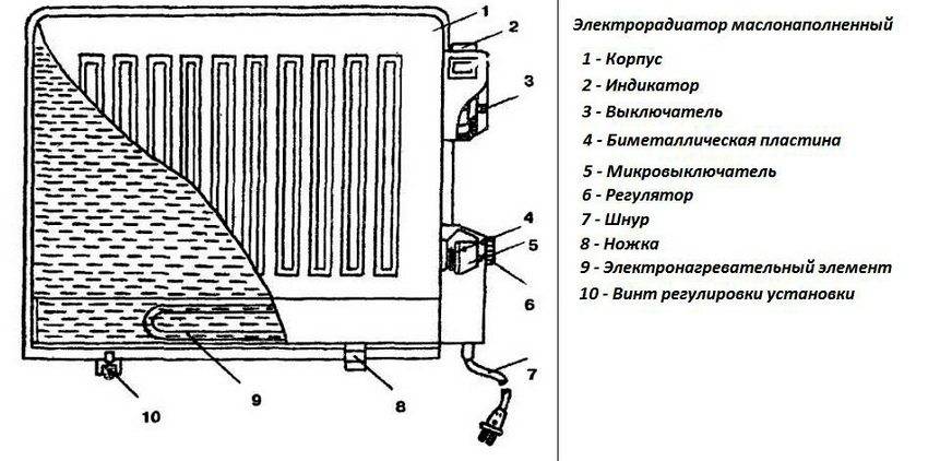 Внутри установлен ТЭН, прогревающий масло, которое передает тепло находящимся вокруг воздушным массам. Как правило, не используется как основной отопительный прибор. Обогреватель может устанавливаться в любом месте — в зоне отдыха, у стен, под столом.