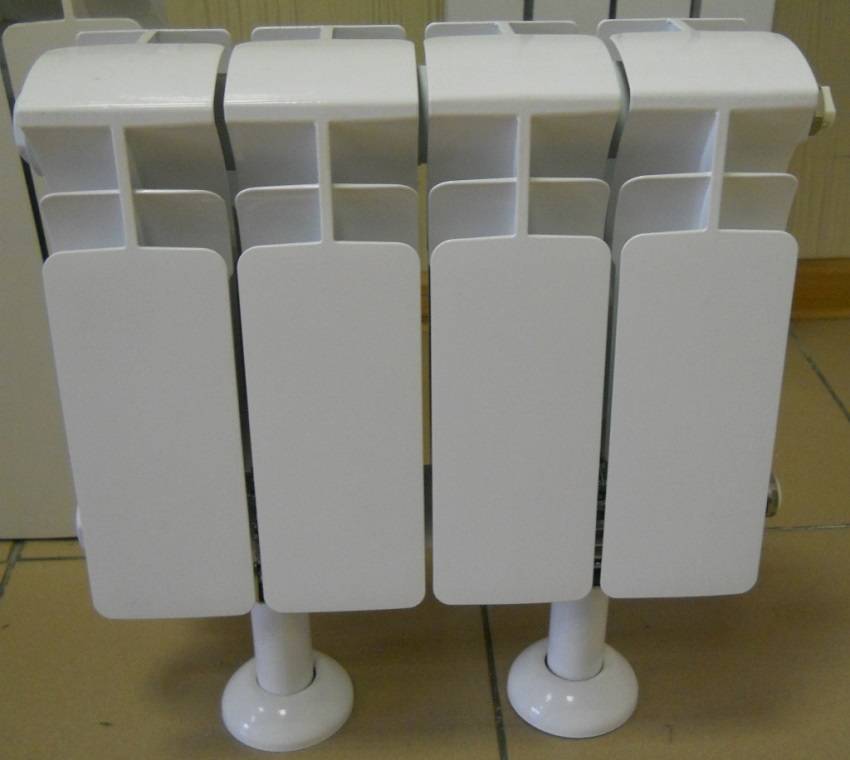 - Ножек для биметалла и алюминия не производят. Зато выпускают стойки, позволяющие осуществлять напольную установку батарей. Сначала к полу прикрепляется такая опора, затем на нее ставится и крепится радиатор.