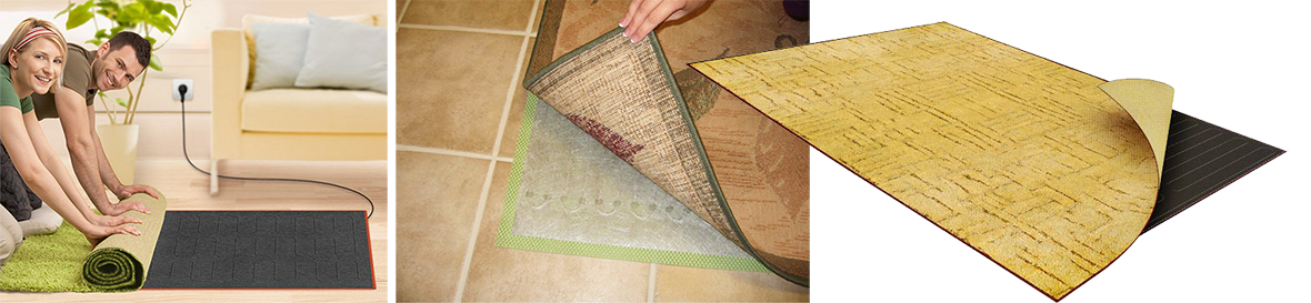 Мобильный теплый пол, предназначенный под ковер, будет наиболее эффективен в сочетании с термостойкой синтетикой или натуральными тканями средней толщины. Специалисты советуют выбирать модель под мобильный пол без цветового оформления. Вызвано это тем, что краситель под воздействием высокой температуры может повести себя непредсказуемо.