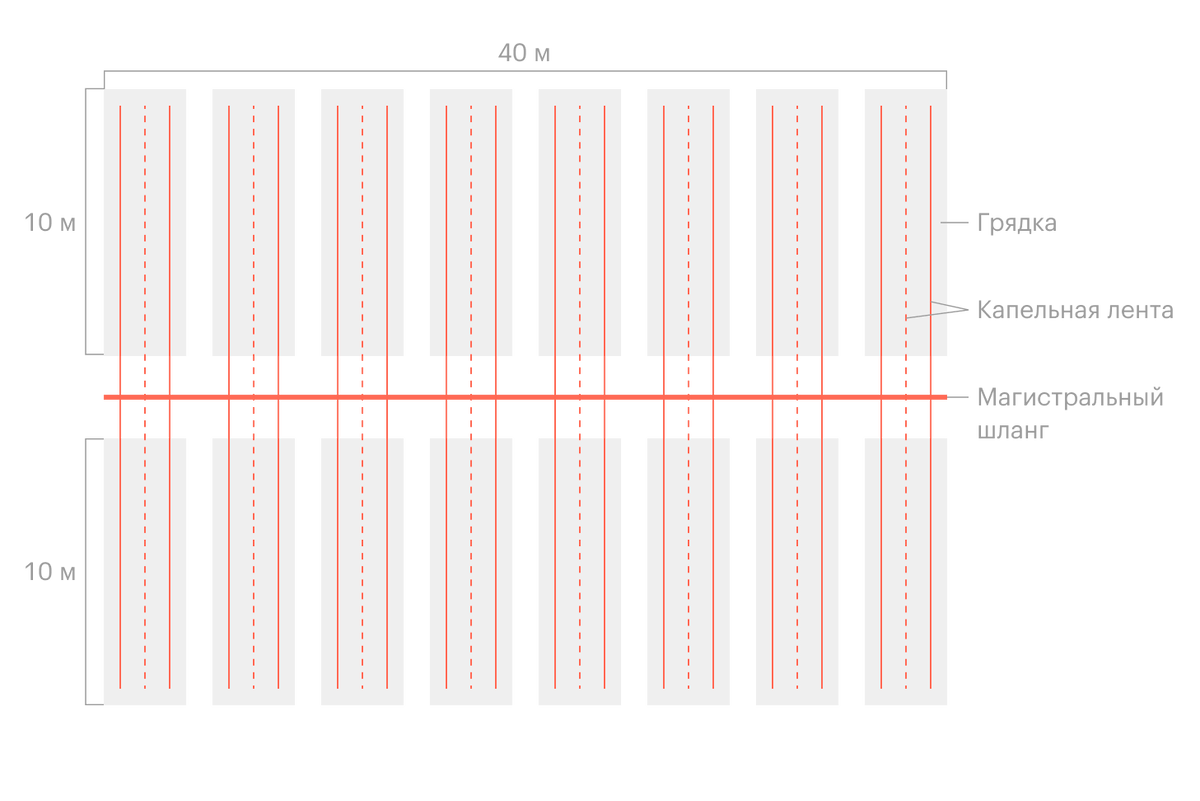 - Лента с капельницами на определённом расстоянии друг от друга (вместо ленты может быть шланг).