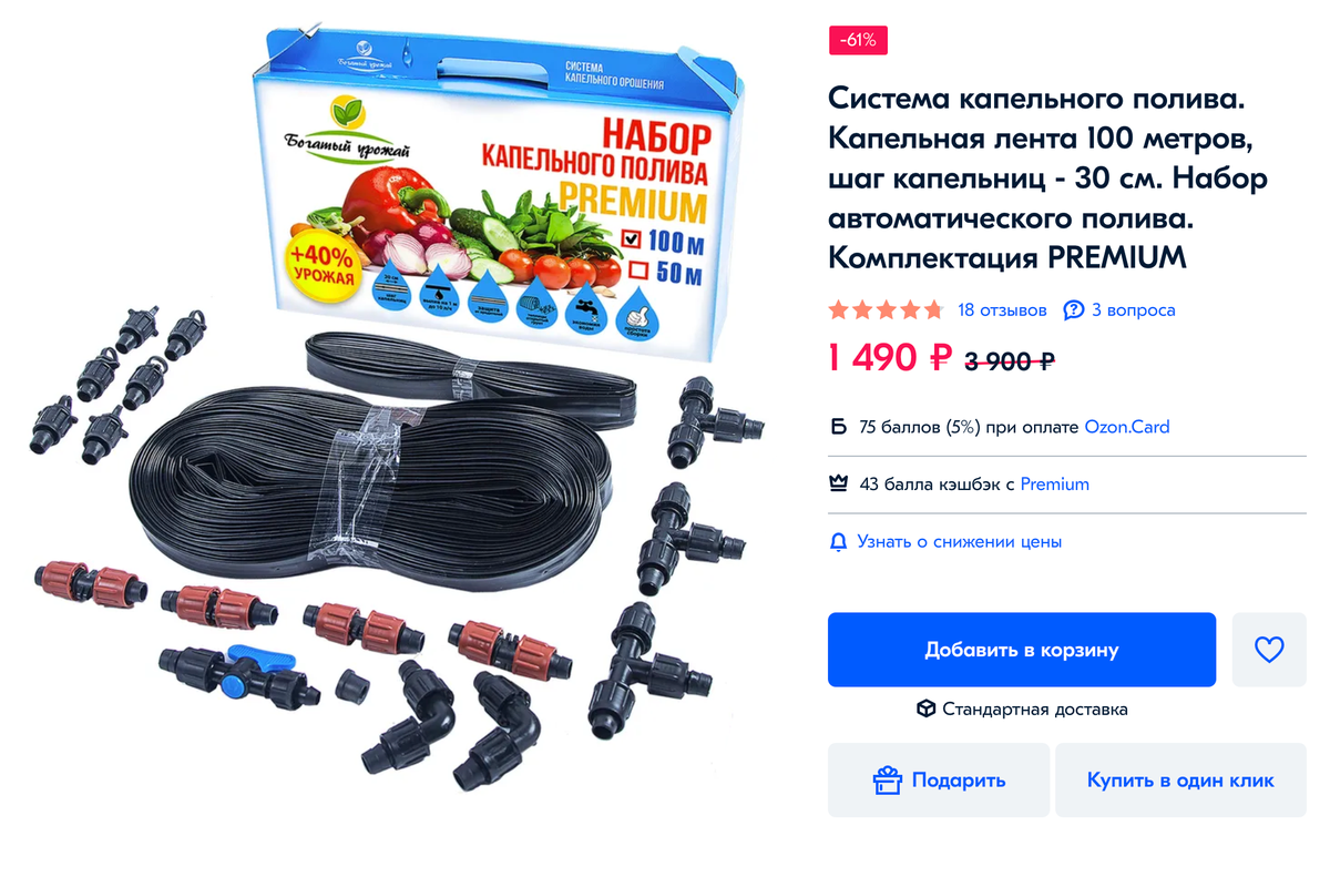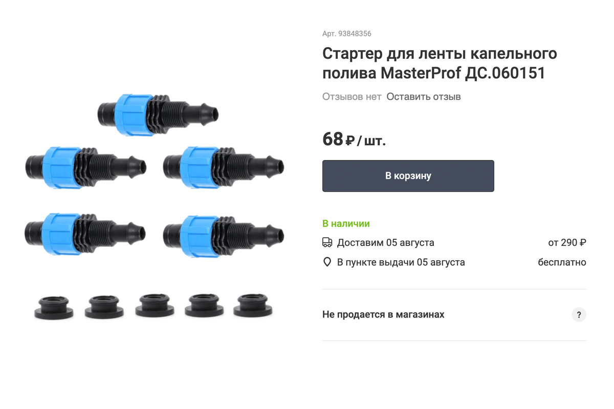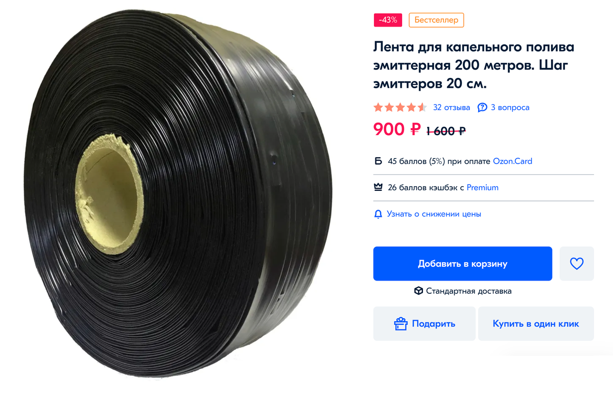В следующий раз я купила уже эмиттерную ленту. В ней вставлены мини-капельницы — эмиттеры, сквозь которые точно так же капает вода. Капельницы не засоряются и работают даже с минимальным давлением воды.