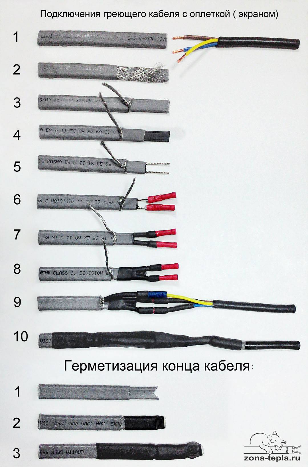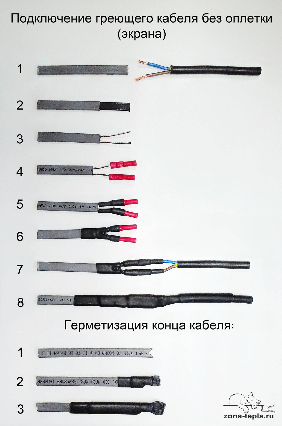 Подключение греющего кабеля без оплетки (экрана) саморегулирующегося типа: