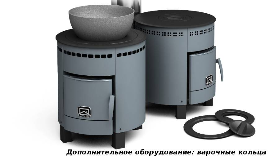 Подвидом подобной печи являются отопительно-варочные печи. У них имеется варочная поверхность, выполненная из стали или чугуна. Конфорки там могут быть как съемными, так и стационарными.