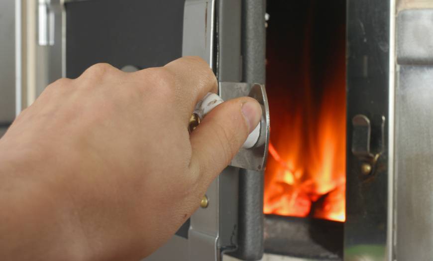 Регулировка тяги осуществляется заслонкой-шибером: при избыточной тяге заслонка частично закрывается.