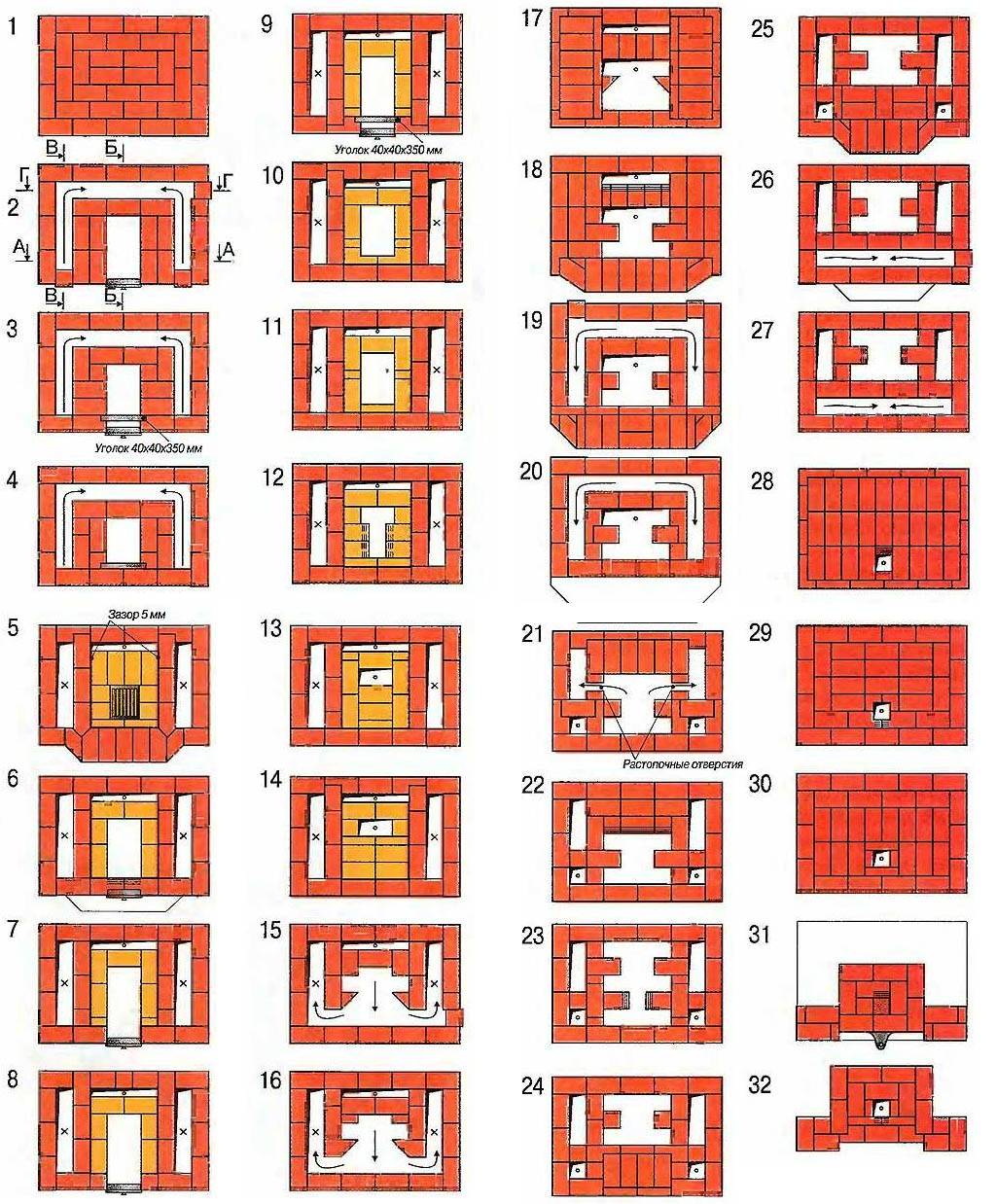 Для начинающих печников важно иметь порядовку – инструкцию с указанием числа рядов и элементов, соответствующих этому. Особенности кладки в следующем: