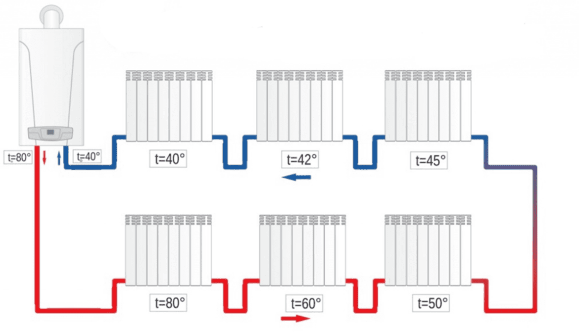 В то же время оно должно обеспечивать движение теплоносителя по всей системе, при этом разница температуры воды на выходе из котла и в точке возврата не должна превышать 25—30 °С.