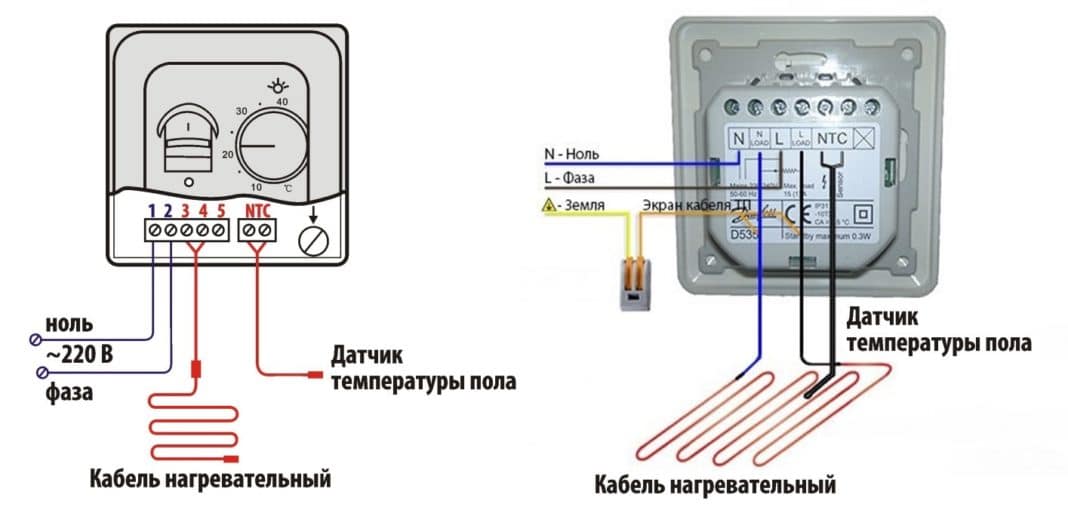 Схема подключения двужильного кабеля к термостату