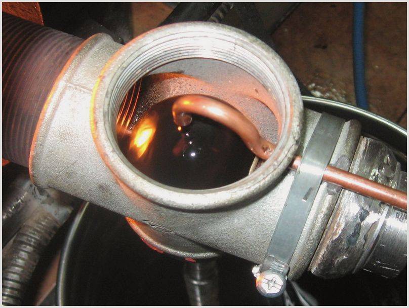 Не помеха и наличие в отработке воды или автомобильного антифриза (в разумных пределах), хотя небольшие сбои могут иметь место. Дело в том, что сила поверхностного натяжения воды выше, чем у жидких углеводородов. Соответственно, пленка из отработки легче отрывается от рабочей поверхности под воздействием воздушного наддува в горелке Бабингтона. Если в масле имеется немного воды, то последняя практически не попадает в зону горения, а стекает вниз, в отстойник.
