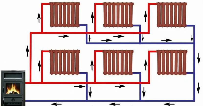 Двухтрубная система отопления дома с нижней разводкой — схема
