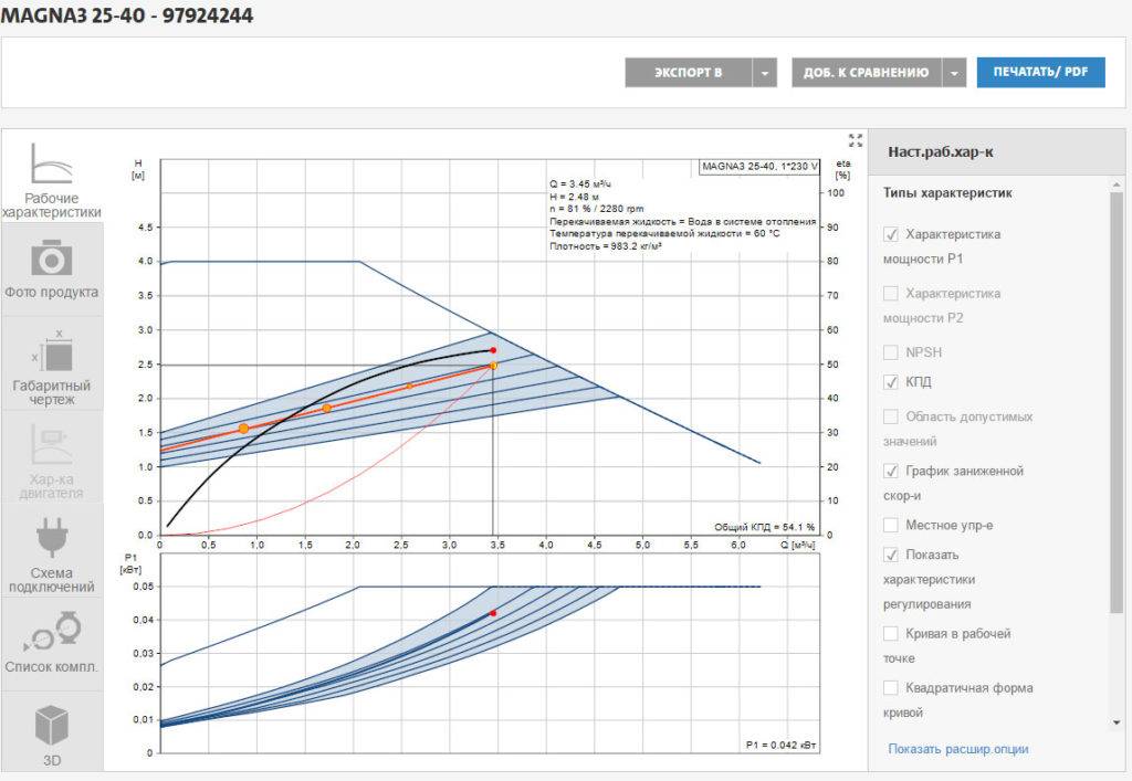 Данную закономерность можно отследить только на особом графике. Эта процедура поможет определить, если тот или иной насос по своим показателям мощности подходит для вашей отопительной системы.