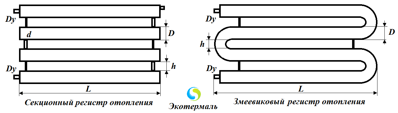 В настоящее время, широко распространены горизонтальные регистры, которые представляют собой параллельно расположенные гладкостенные трубы с вертикальными перемычками. Такое приспособление отличается от современных радиаторов большим объемом теплоносителя, следовательно, выделяет больше тепла и процесс остывания значительно снижен, что позволяет поддерживать нужный уровень температуры в любом помещении.