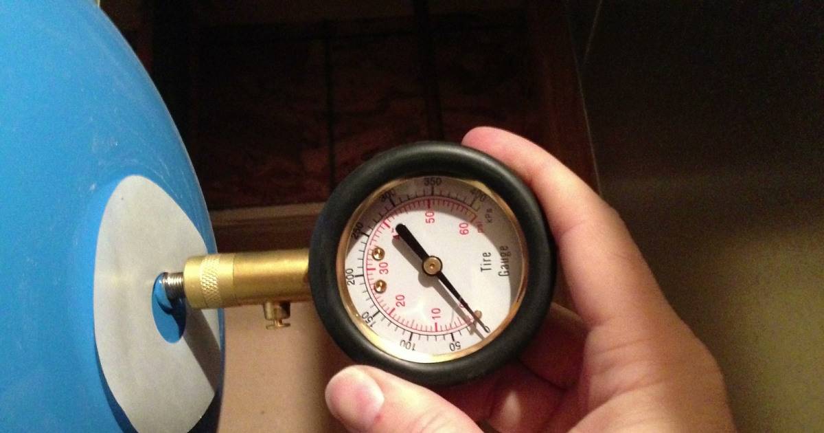 - Для начала, необходимо убедиться, что расширительный бак пустой. После, производится измерение давления воздуха в груше. Для этого следует воспользоваться золотником, находящимся на корпусе гидроаккумулятора.Измерение и подкачка осуществляется при помощи насоса, снабжённого манометром. Минимальное давление должно находиться в пределах 1,5–1,8 Атм. Если этот показатель ниже, то производится подкачка. Выше, воздух стравливается через золотник.