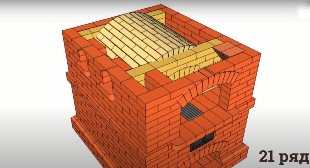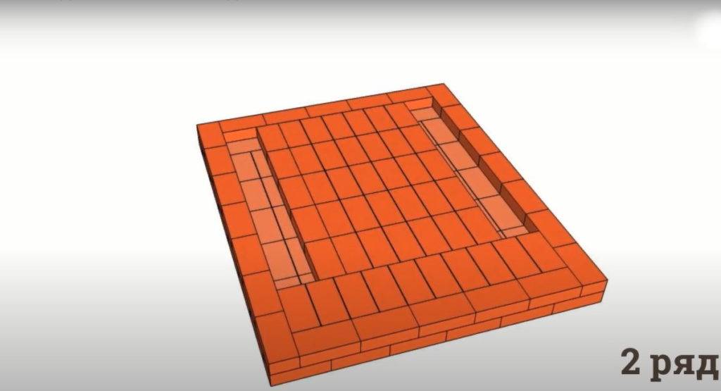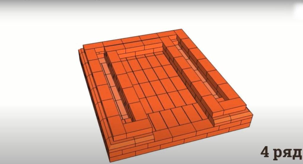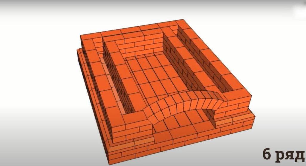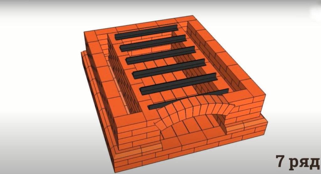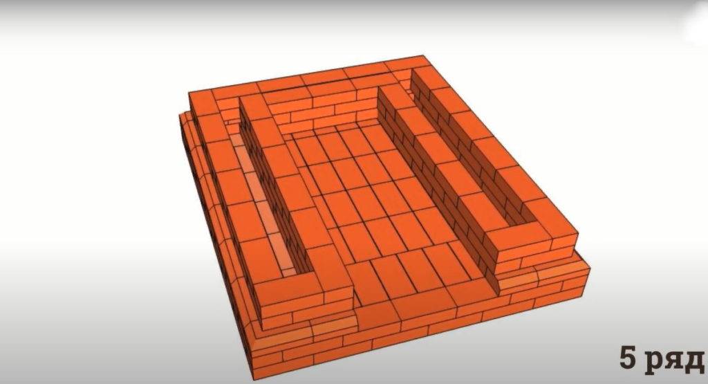 На 5 слое создаются каналы, поддувальная камера. На последнюю кладется решетка. Используется только красный кирпич.
