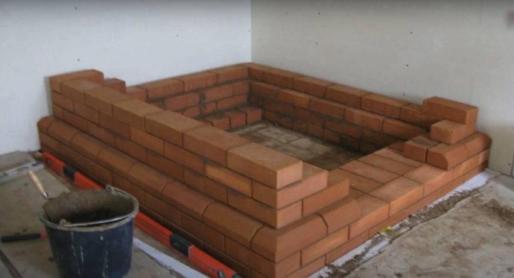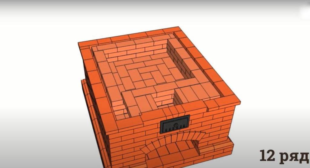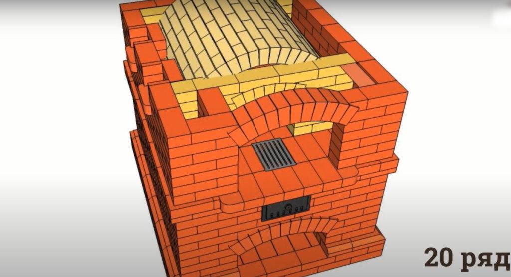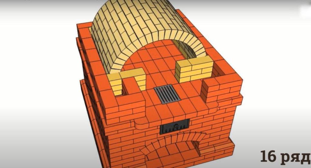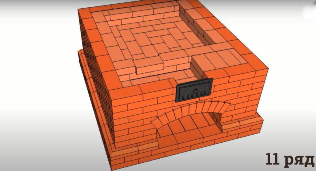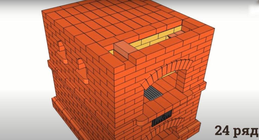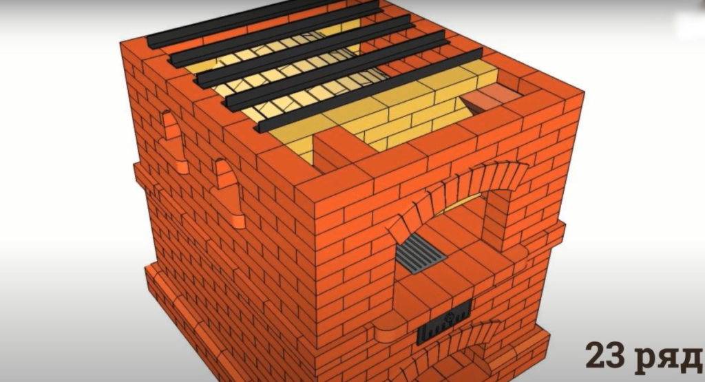 На 5 слое создаются каналы, поддувальная камера. На последнюю кладется решетка. Используется только красный кирпич.