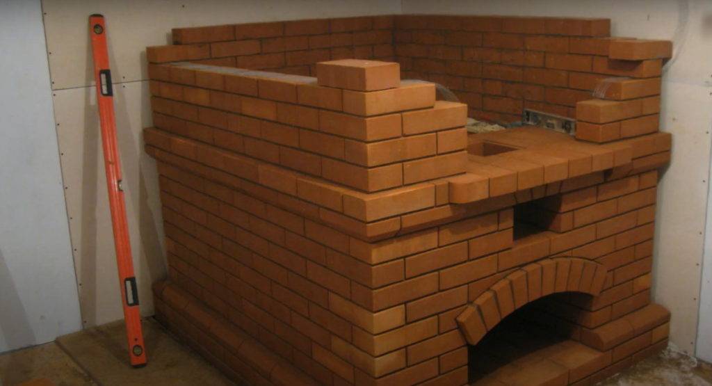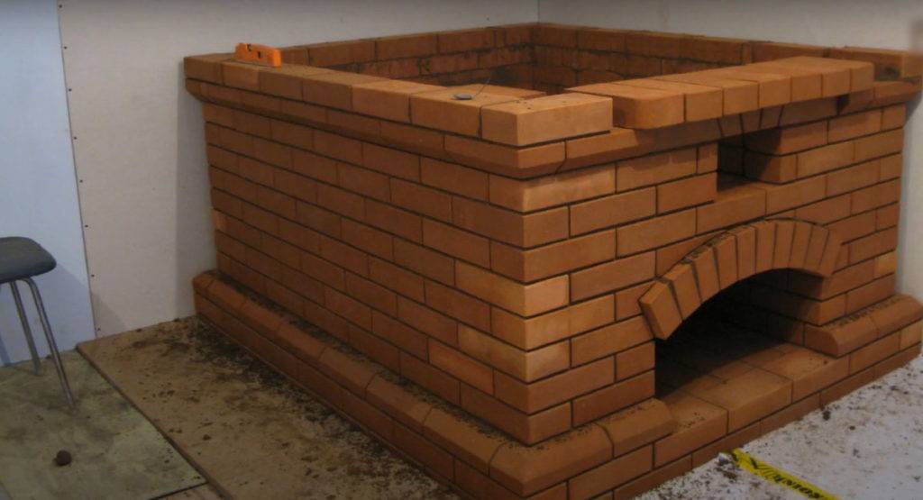 При выкладывании 6 слоя монтируется топочная дверка, вентиляционная решетка. Вокруг топки используется шамотный кирпич. В остальных местах – красный.