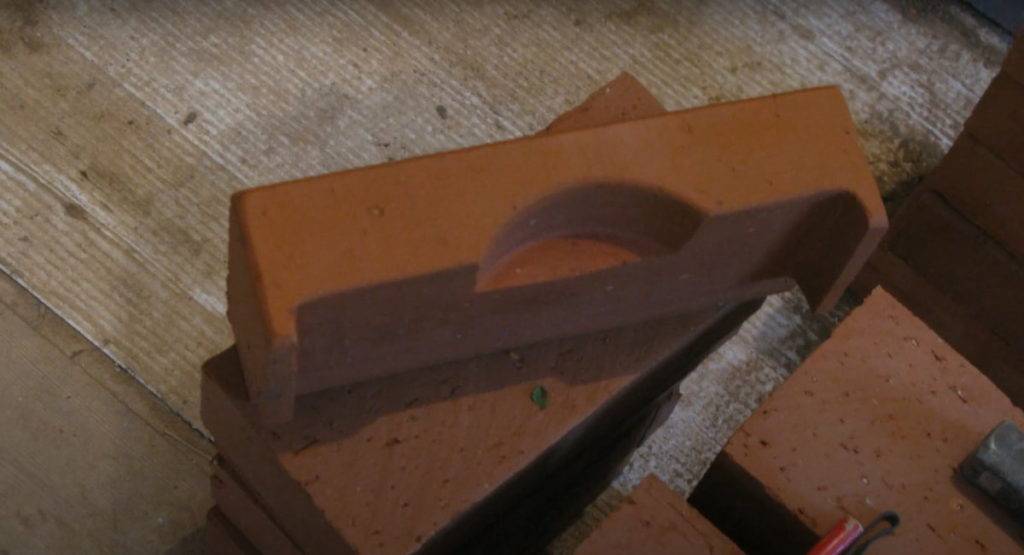 10 ряд. Стесать кирпич для топочной камеры нужно так, чтобы у неё получилась форма воронки.