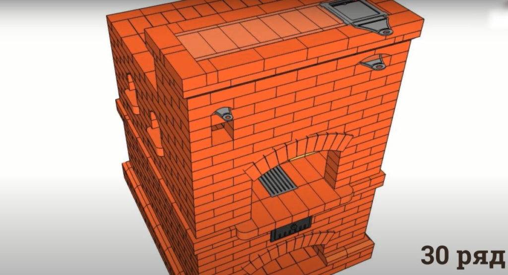 30 ряд. Выкладывается дымовой канал 12×19 см.