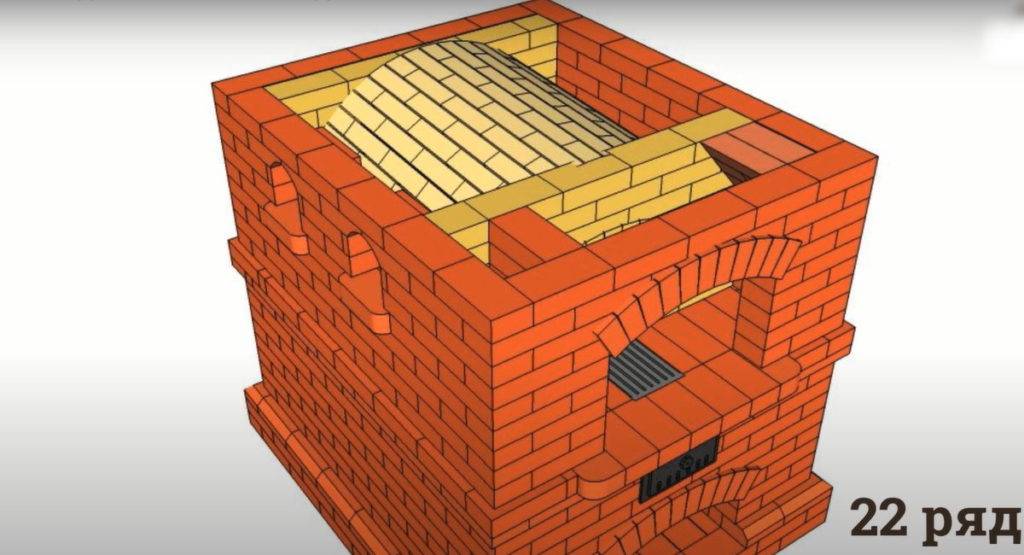 13 — 22 ряды. Выкладываются со строгим соблюдением перевязки швов. В последнем ряду устанавливается задвижка для зимнего хода.