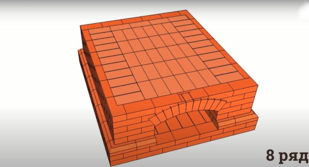 7 ряд. Устанавливается дверка топки. Предварительно рамку нужно обмотать 5-ти миллиметровым слоем асбеста.