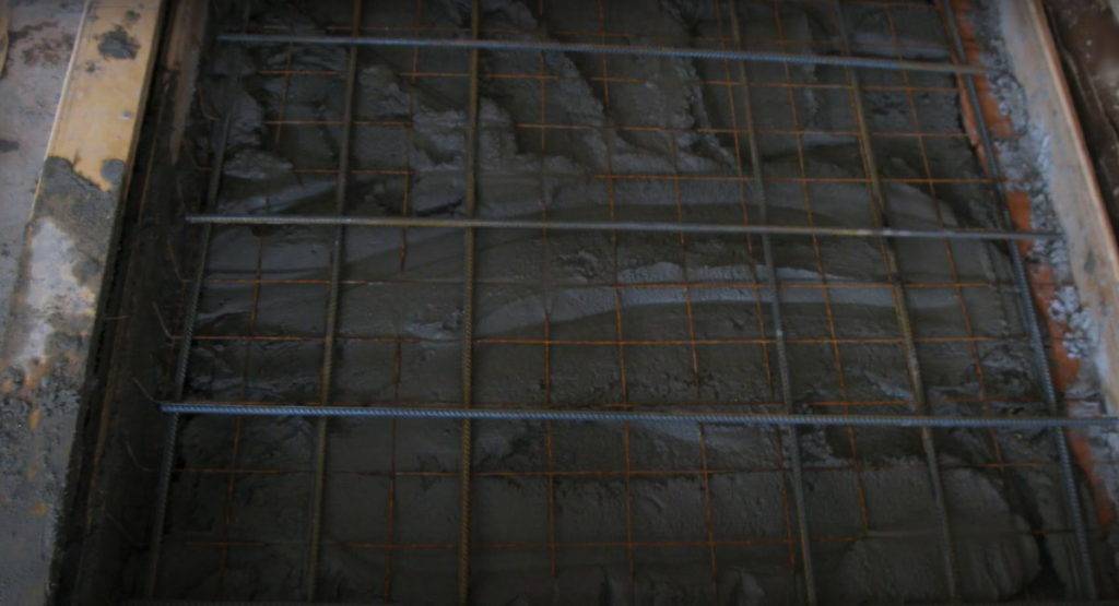 Высота опалубки над уровнем грунта составляет 10-15 см. Затем опалубка заливается бетонным раствором, после сушки поверхность покрывается слоем обмазочной гидроизоляции. Между основанием для печи и общим фундаментом должен остаться деформационной шов в 1 см, который засыпается песком.