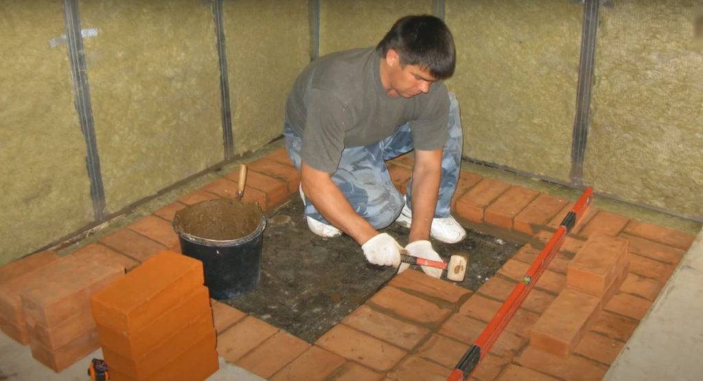 Русская печка с лежанкой начинает монтироваться только после полного высыхания бетона. Кирпич перед работой также следует подготовить, достаточно его замочить в ведре или корыте с водой.