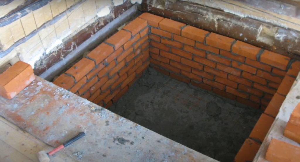 Нижняя часть конструкции, называемая опечьем, должна быть полная внутри. Обычно ее делали из дерева, а сейчас используют кирпич – для большей надёжности и долговечности. Чтобы доступ в это пространство был свободным, устанавливается проем под названием подпечек. Изготавливается в форме арки из кирпича. Сверху засыпается теплоемкий материал. В большинстве случаев используется песок.