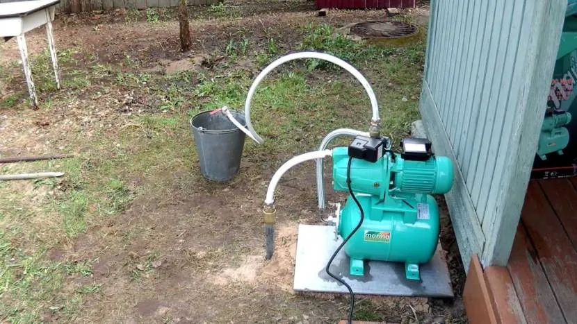 Насос самовсасывающего типа устанавливается на поверхности рядом со скважинойИсточник ytimg.com