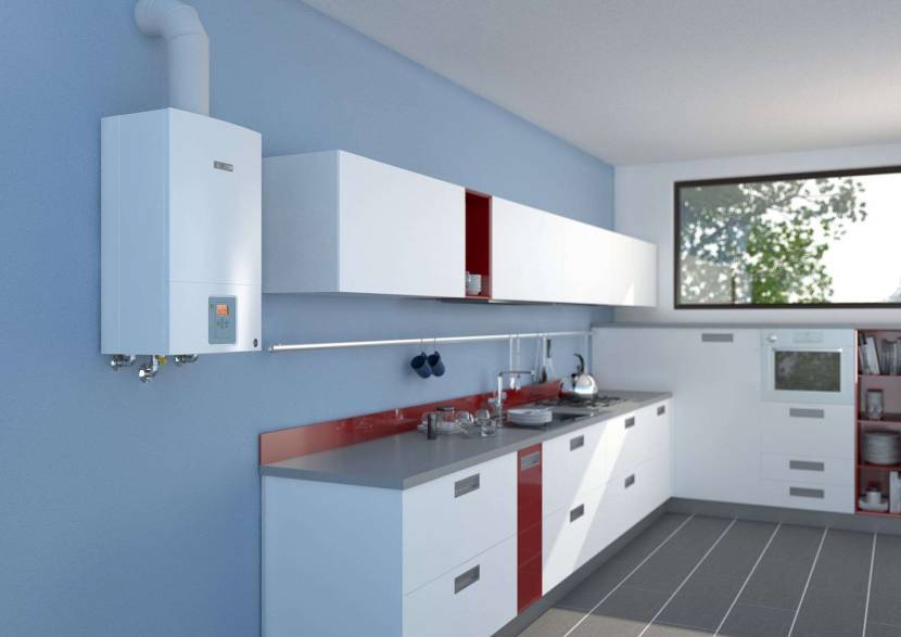 Отсутствие лишнего оборудования позволяет аккуратно вписать настенный котел в интерьер кухниИсточник 3dkonut.com
